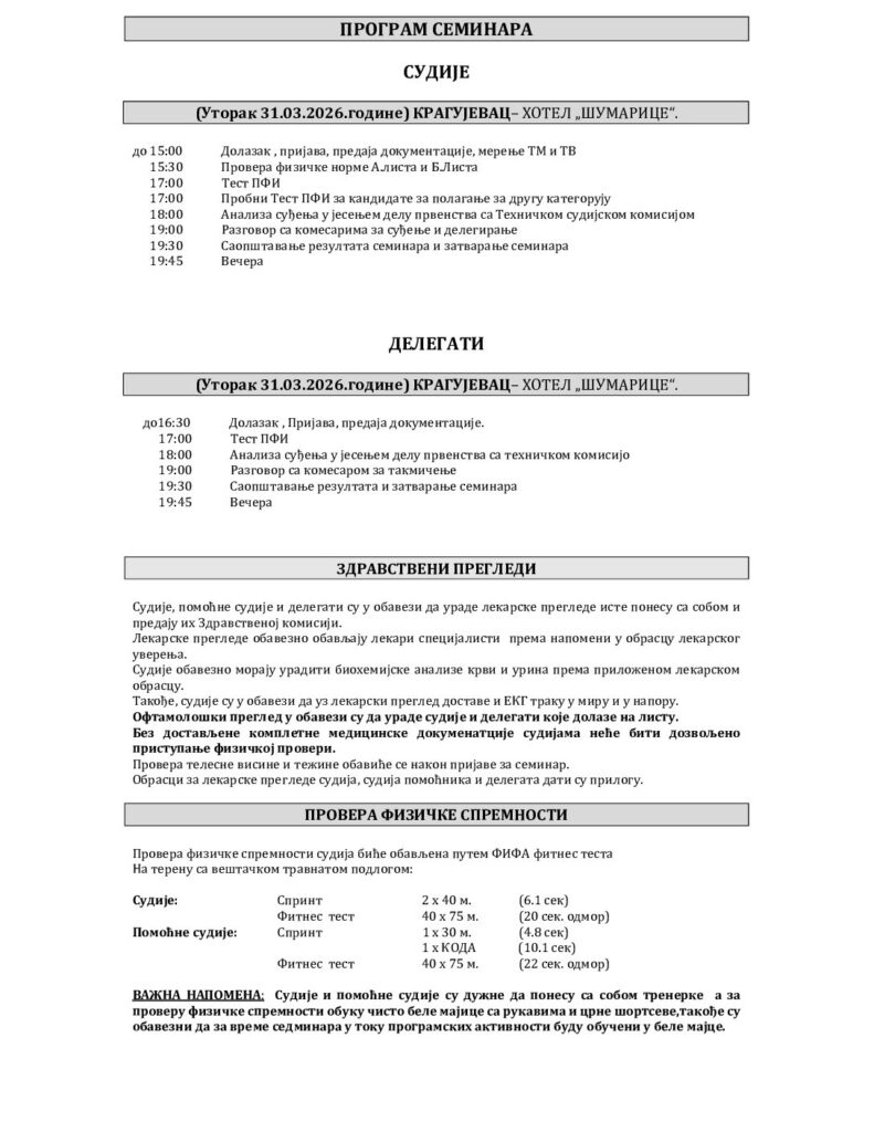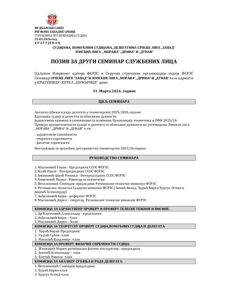 ДРУГИ СЕМИНАР СЛУЖБЕНИХ ЛИЦА СРПСКЕ ЛИГЕ ЗАПАД И ЗОНСКИХ ЛИГА ФС РЗС